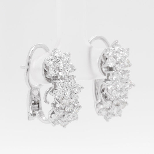 Platinum 800 & 18k White Gold Diamond Triple Cluster Earrings 2.50ctw F VS1