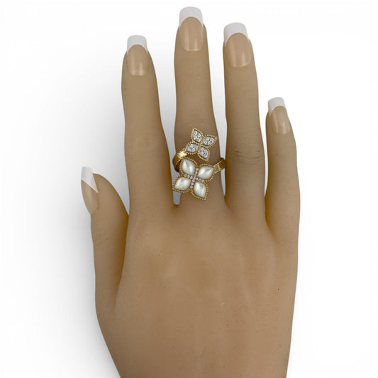 Roberto Coin Venetian Princess 18k Yellow Gold Diamond MOP Flower Bypass Ring S8