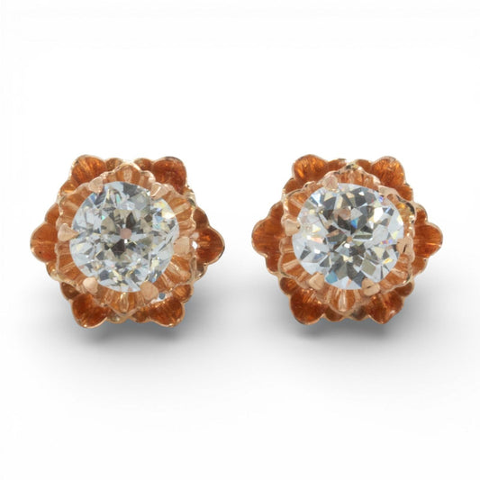 Antique 14k Rose Gold Old Mine Diamond Tulip Stud Earrings 0.80ctw I-J SI1 w BOX