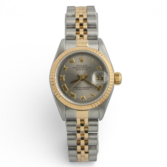 1999 Rolex Ladies DateJust 79173 Steel & 18k Yellow Gold Gray Roman Jubilee 26mm