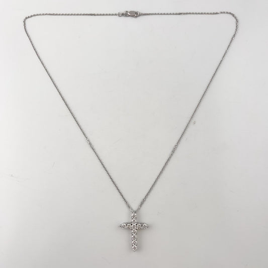 14k White Gold 11 Stone Diamond Cross Pendant Necklace 1.21ctw H-I SI2 4.7g