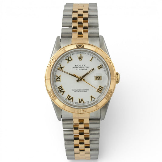 Rolex DateJust Thunderbird 16263 18k & Stainless White Roman Turn-O-Graph 36mm