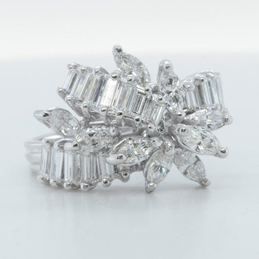 14k White Gold Marquise & Straight Baguette Diamond Cocktail Ring 1.20ctw Size 5