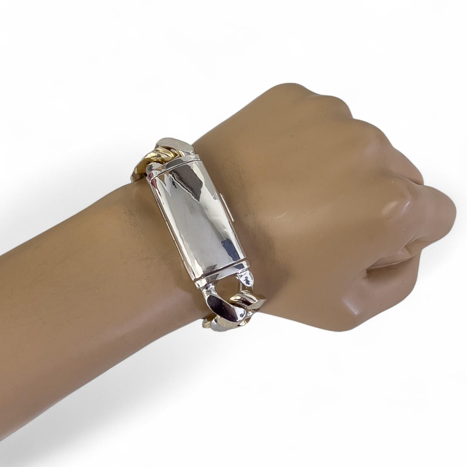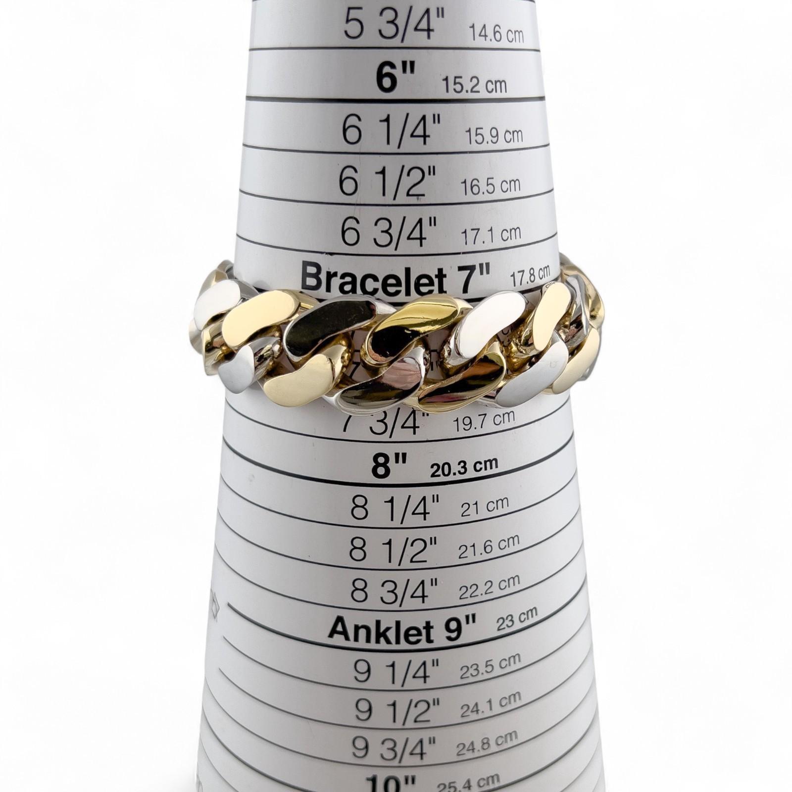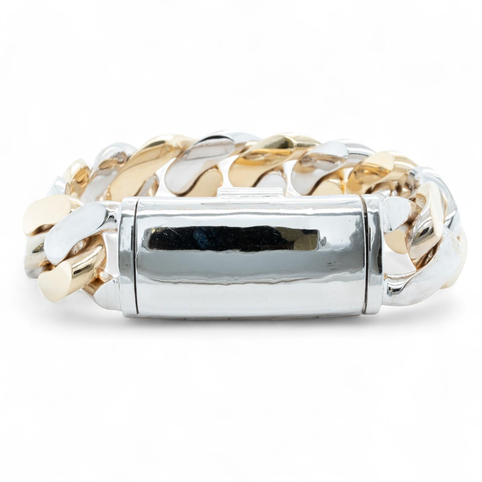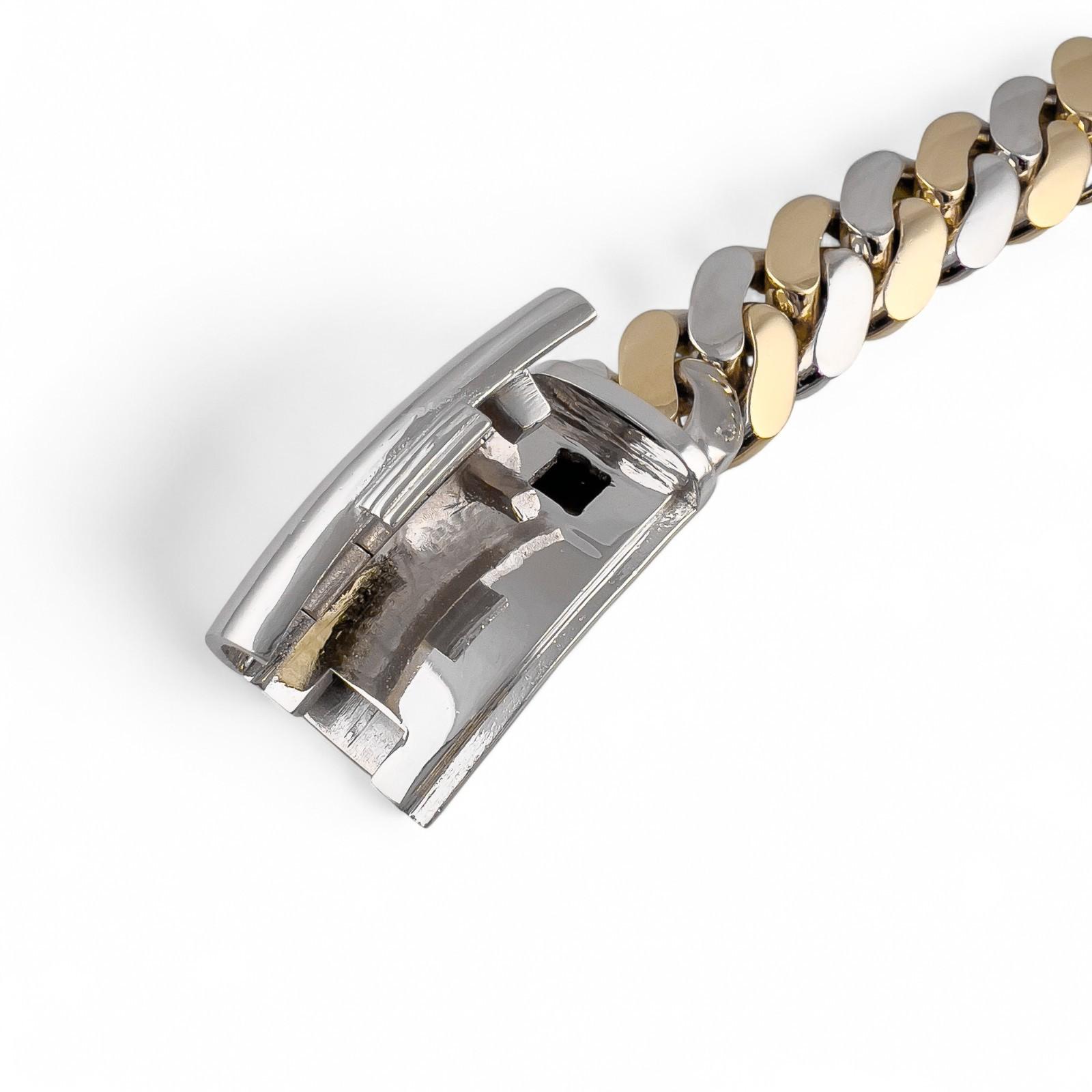 14k White & Yellow Gold Two Tone 20mm Cuban Link Slide Buckle Bracelet 226.6g
