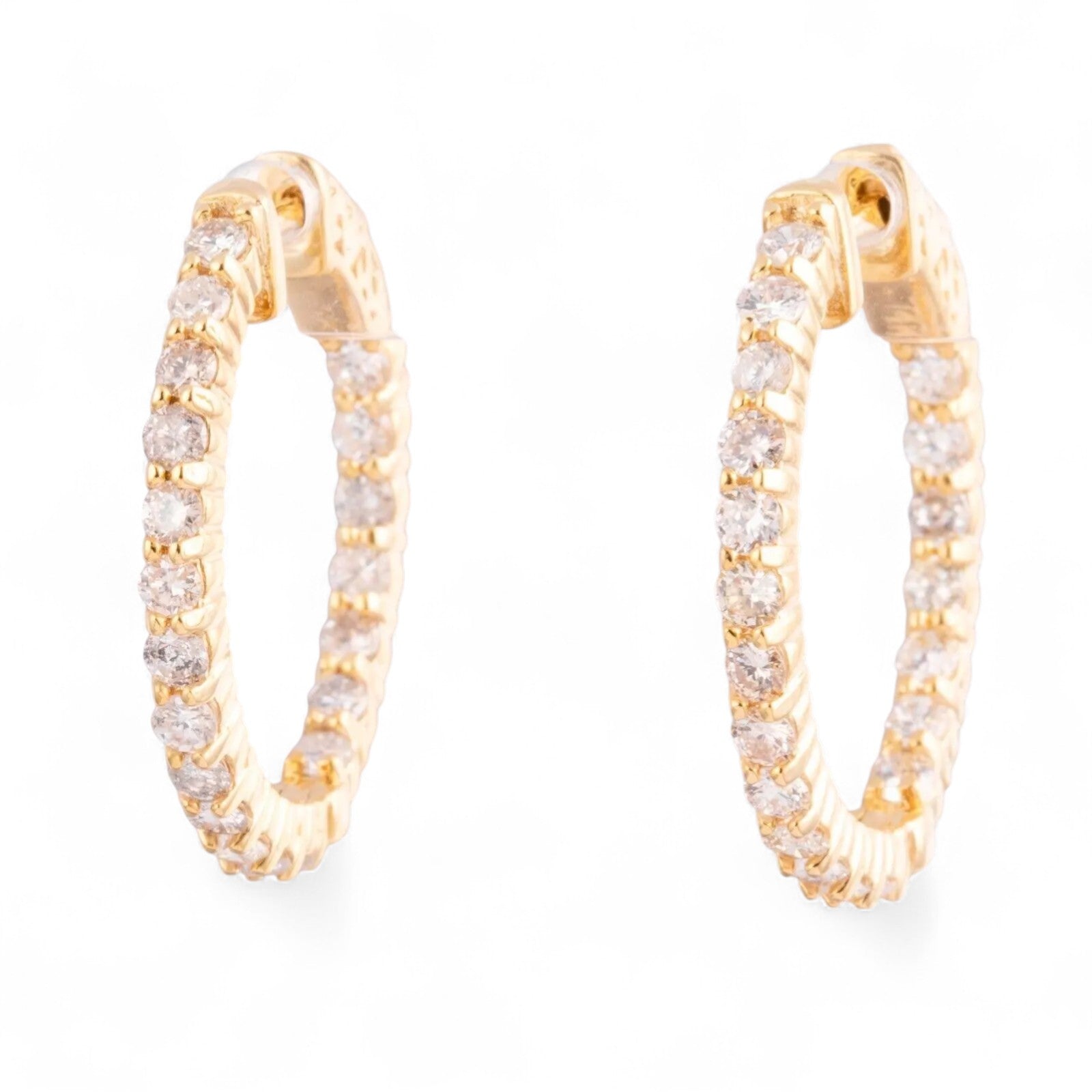 14k Yellow Gold Diamond In & Out Hoop Earrings 1.65ctw - Snap Closure