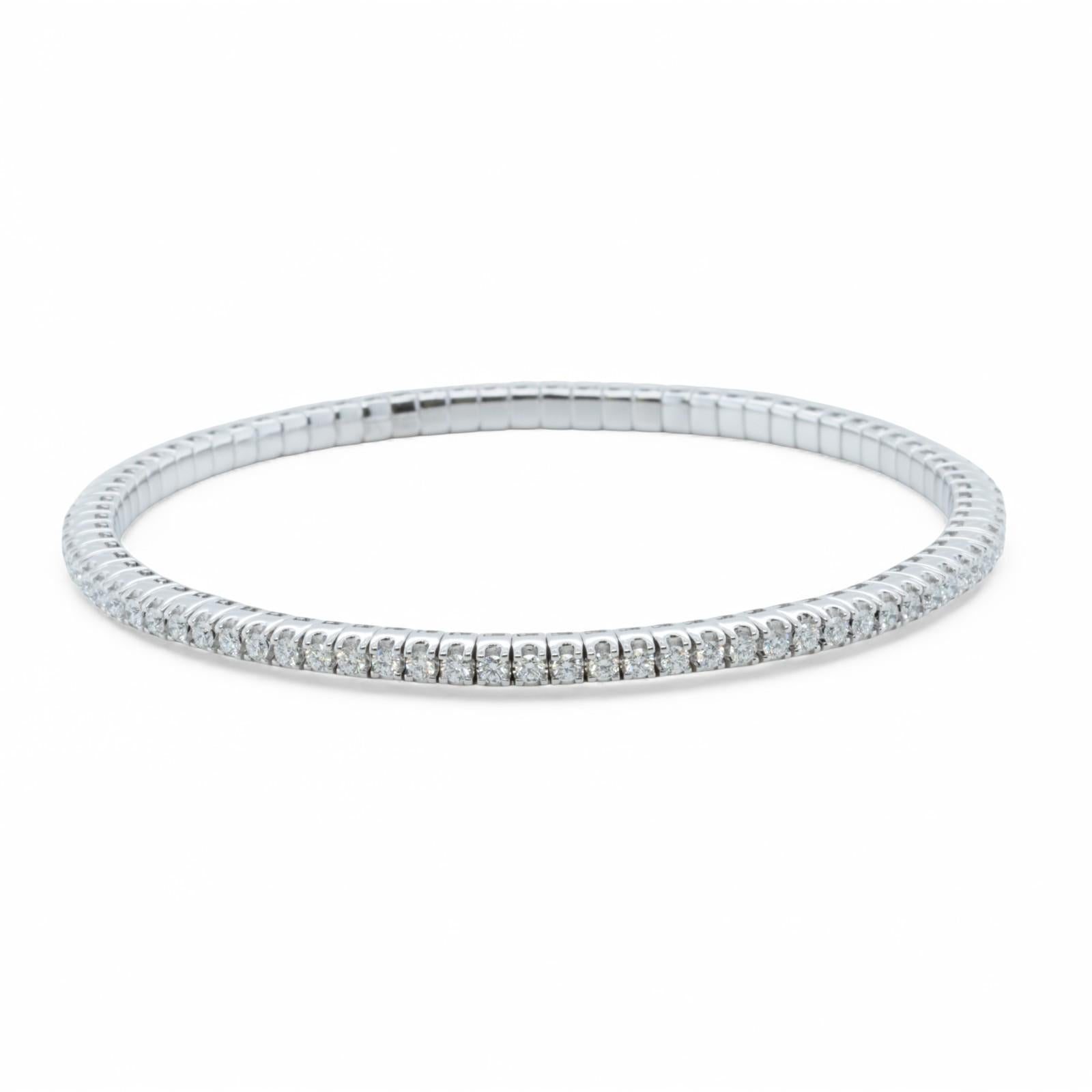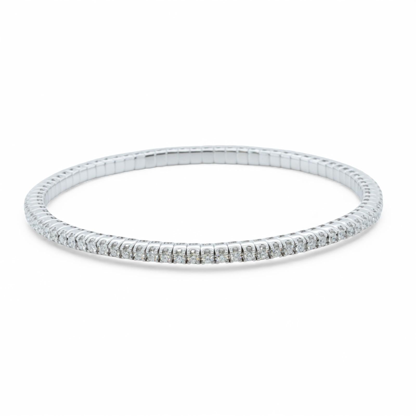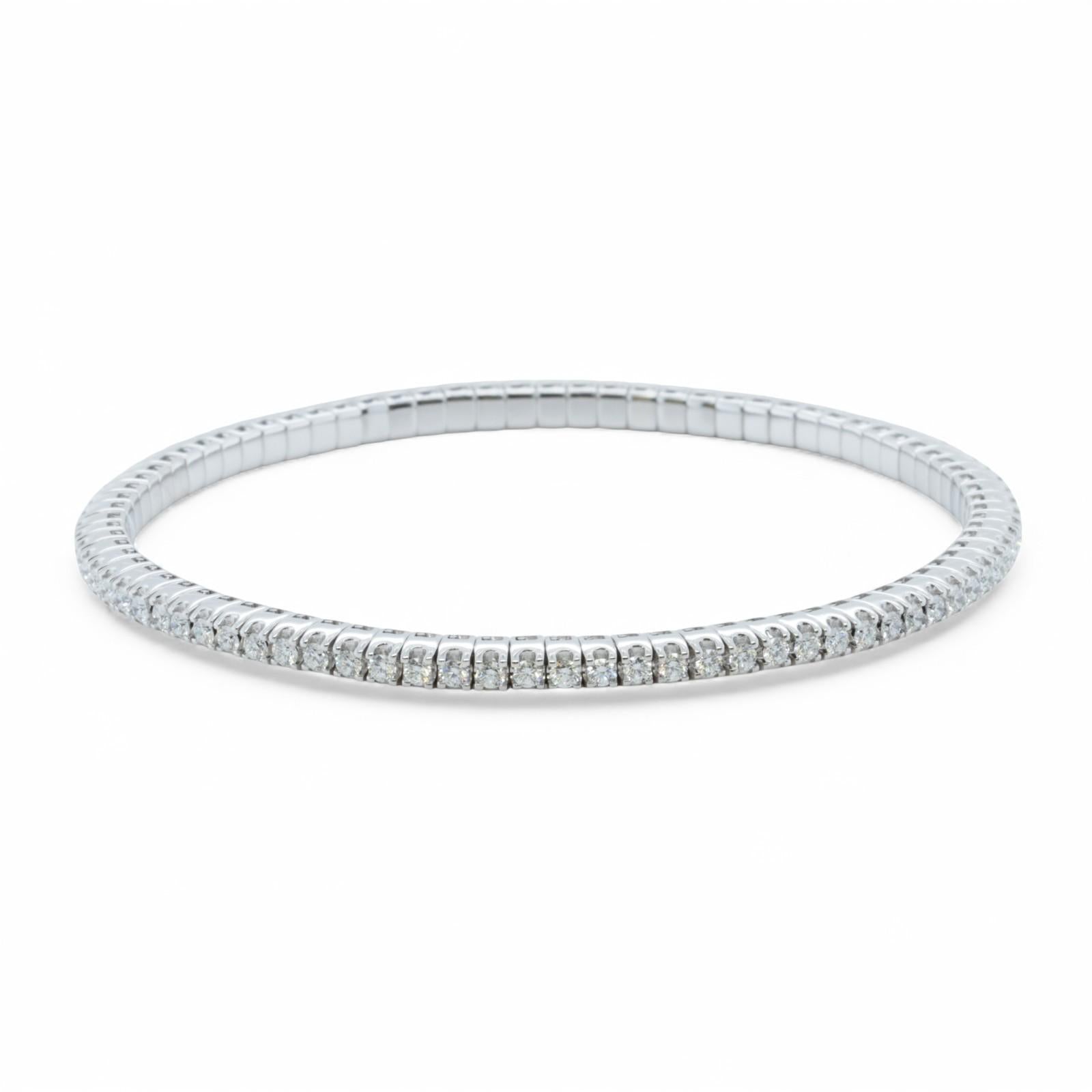 Bucherer Stretchy Diamond 18k White Gold Riviere Bracelet 1.76ctw G SI BOX CERT