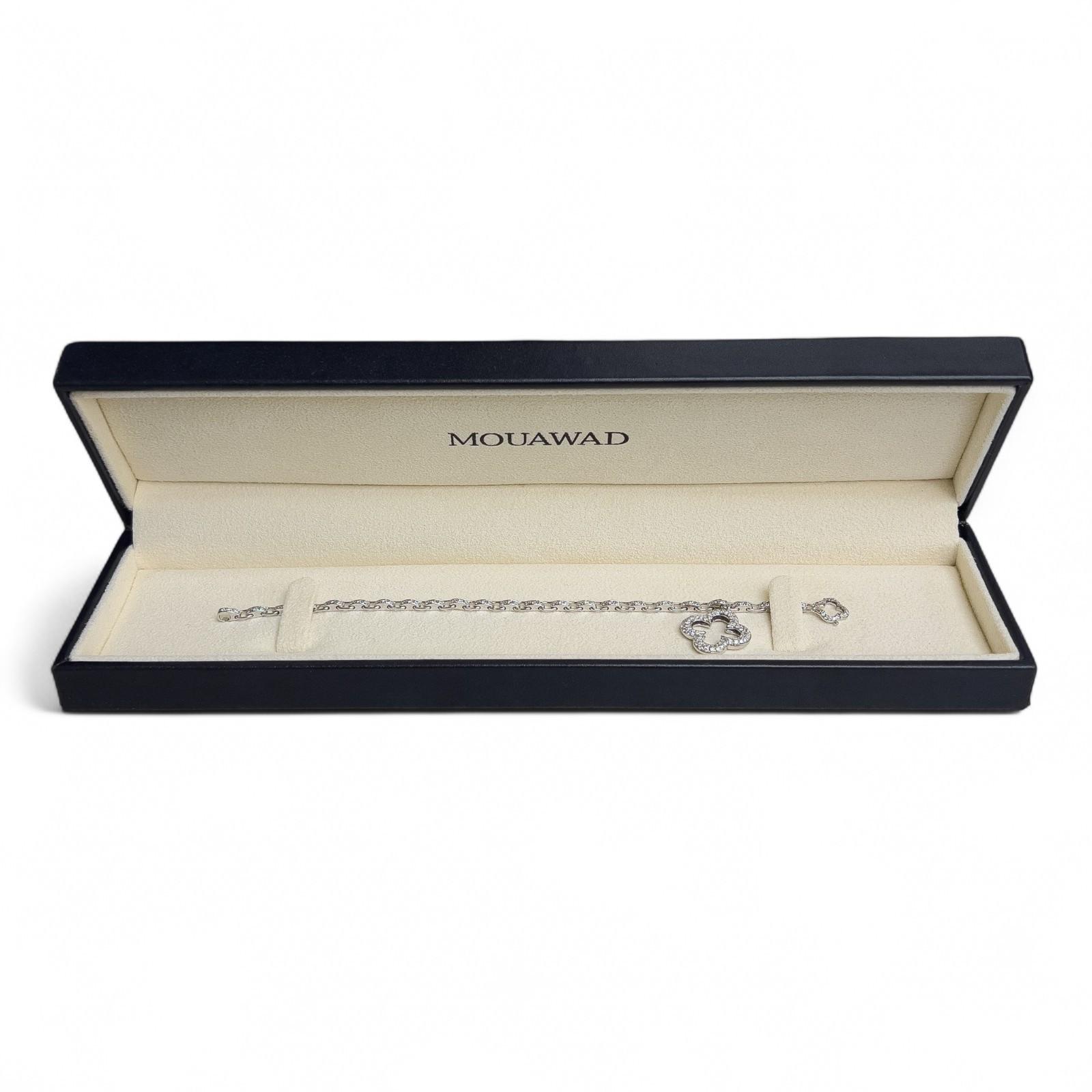 Mouawad Heidi Klum 18k White Gold Pave Diamond Clover Quatrefoil Bracelet w/ BOX
