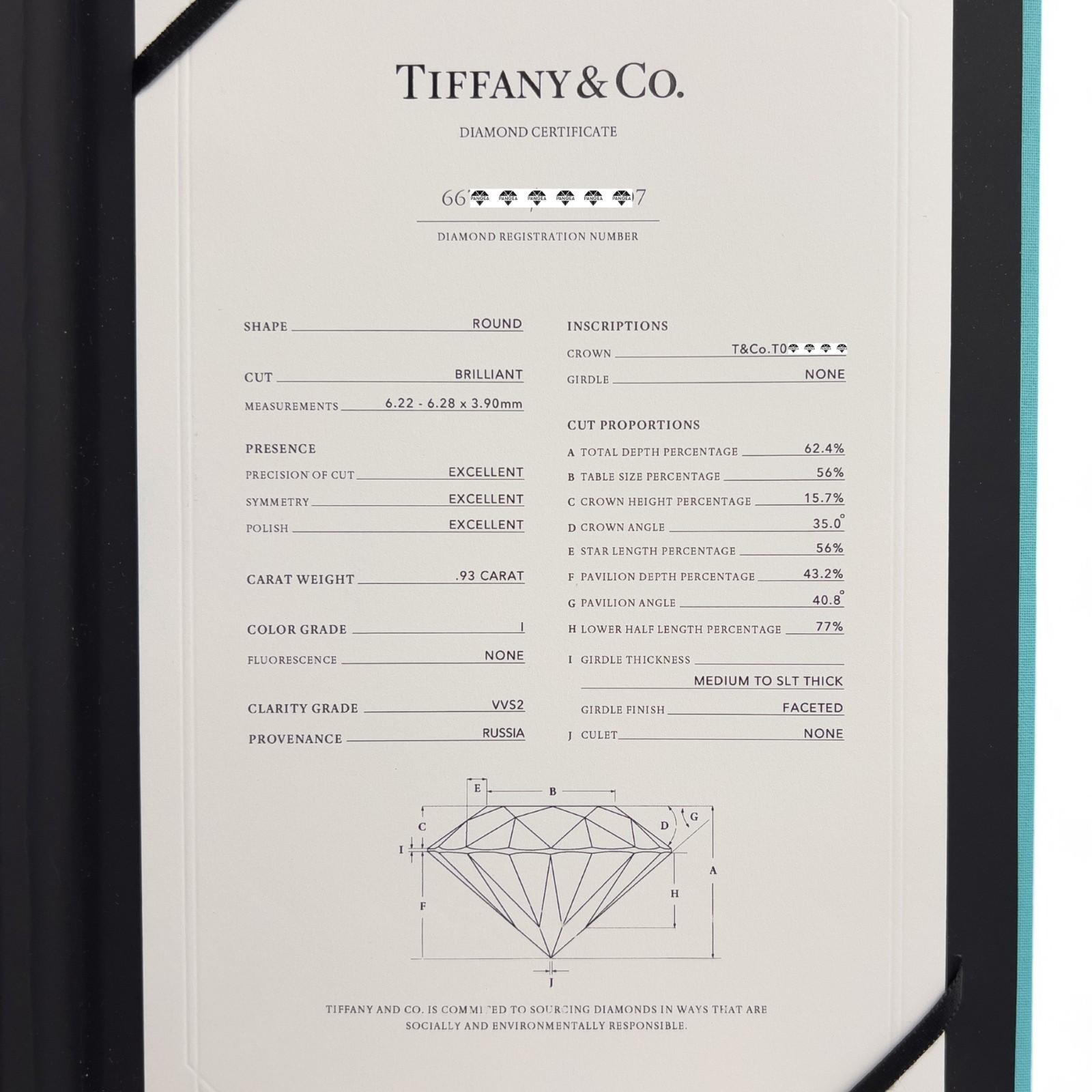 Stones | Round Diamond, 0.93ct I VVS2 +See Tiffany Certificate for more details+ Round Diamonds, 0.20ctw |