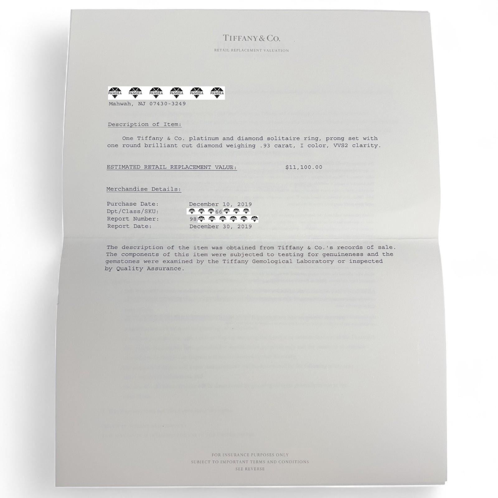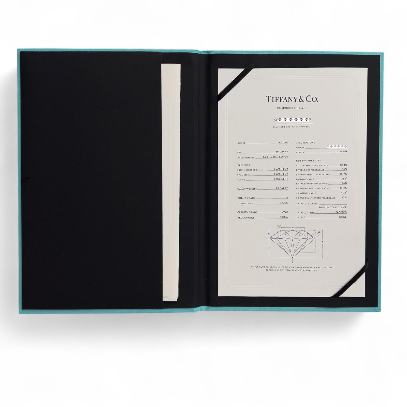 Tiffany & Co Platinum Diamond Engagement Wedding Ring Set 0.93ct I VVS2 BOX CERT
