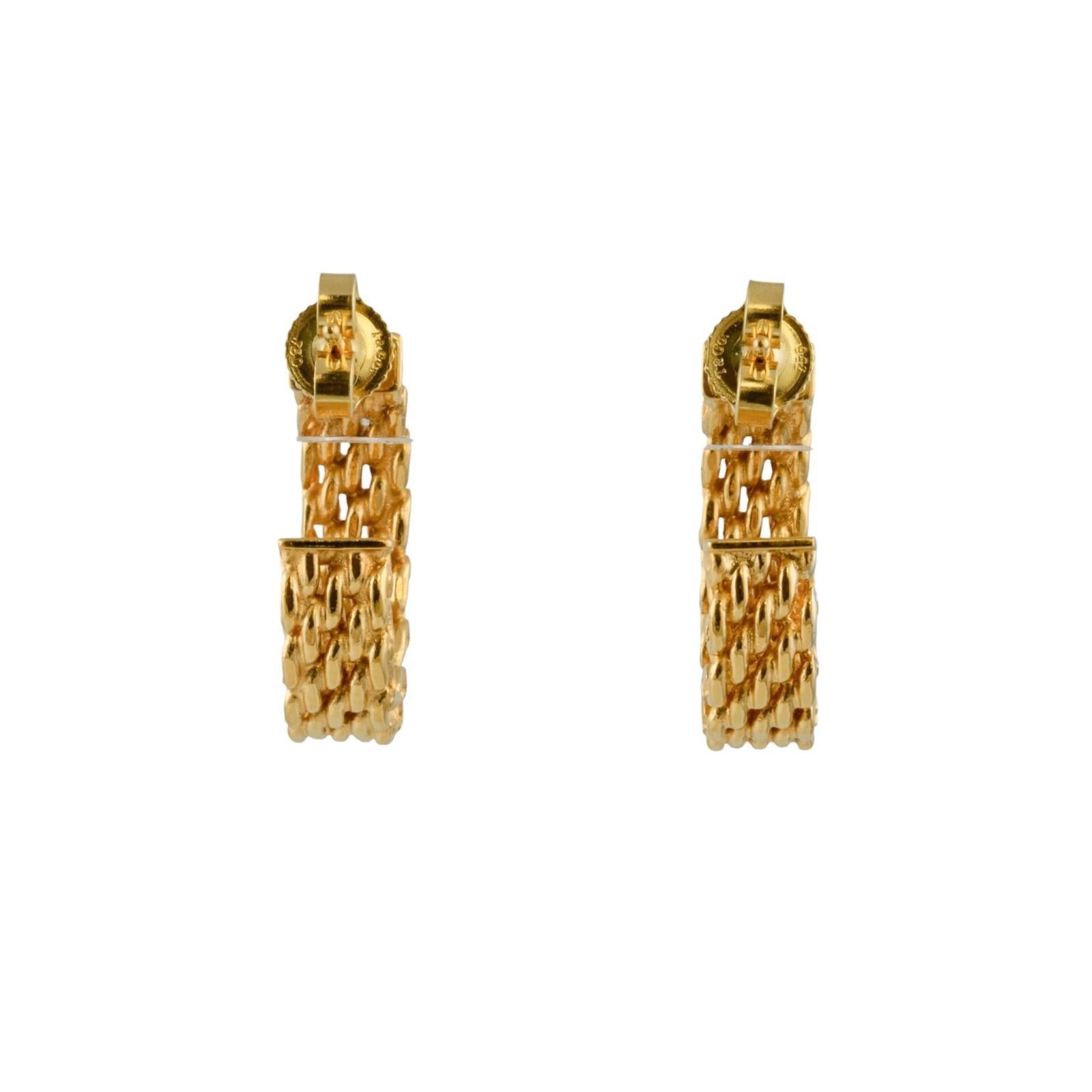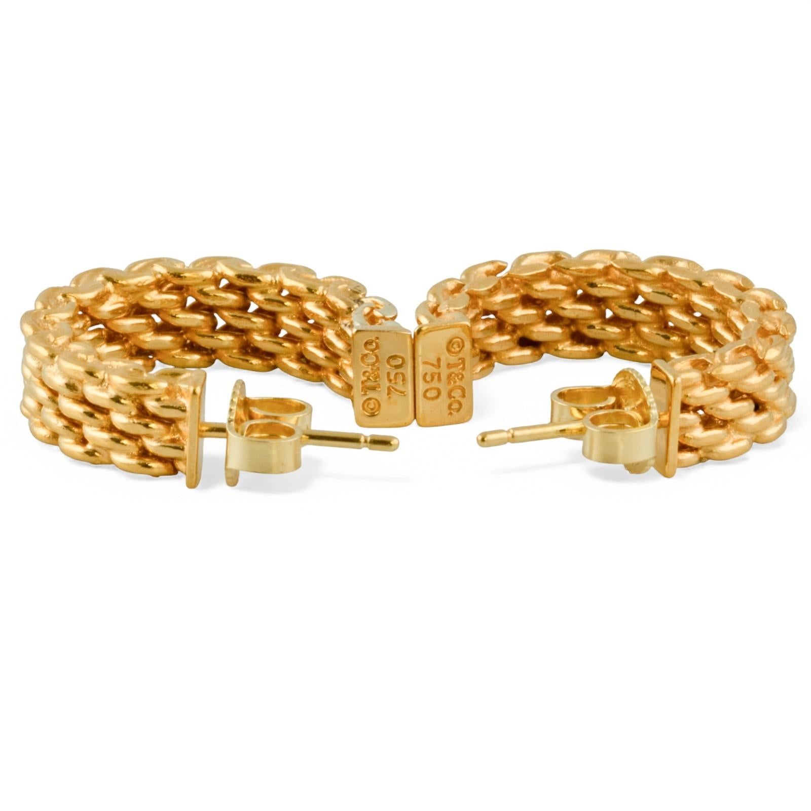 Tiffany & Co. Somerset Mesh 18k Yellow Gold Huggie Hoop Earrings 8.5g