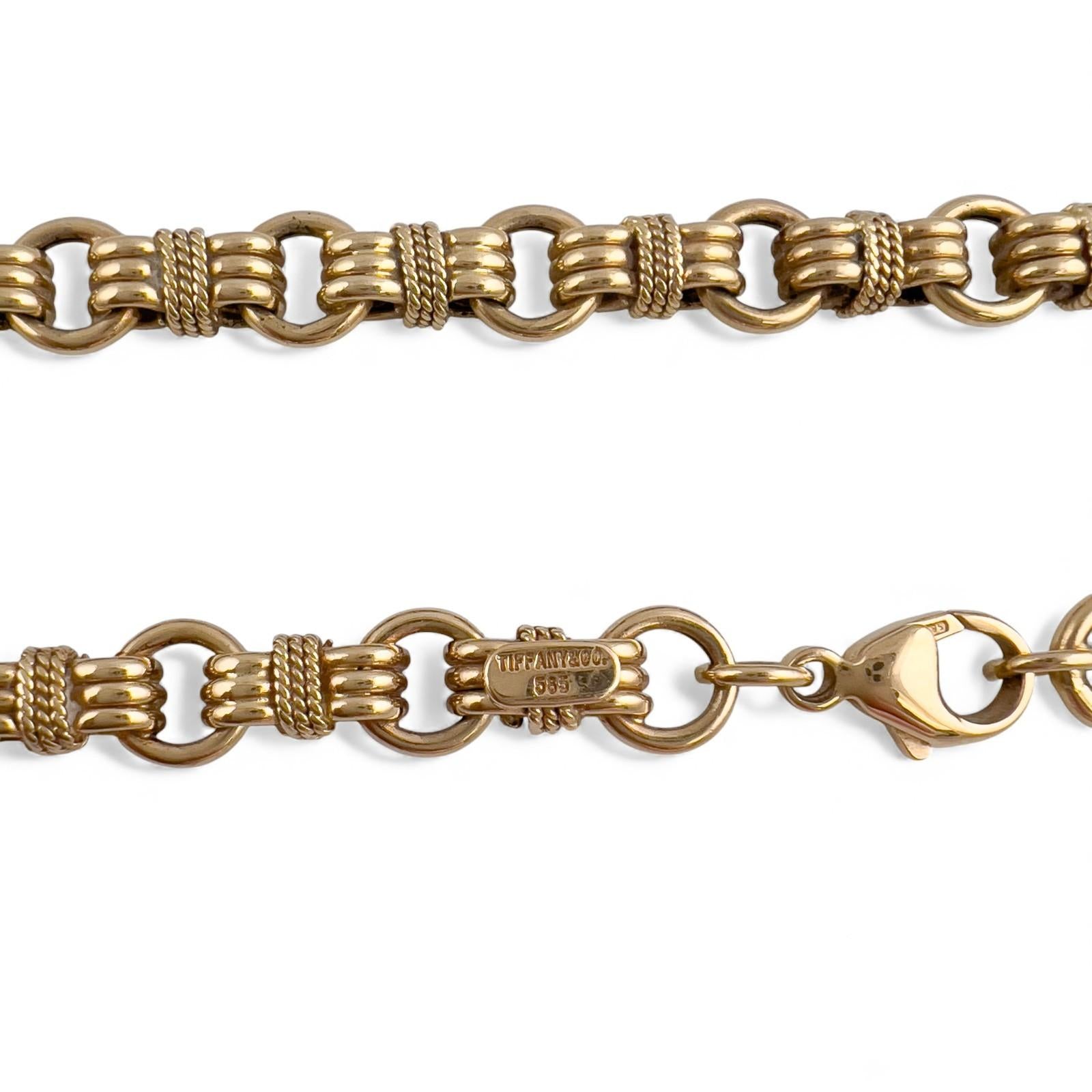 Vintage Tiffany Co. 14k Yellow Gold Twisted Rope Circle Link Choker Necklace 16"